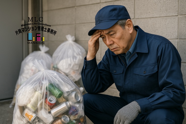 未分別ゴミ対策は、管理組合(理事会)と管理会社が主体となって考えるべきであり、管理人に押し付けてはなりません。